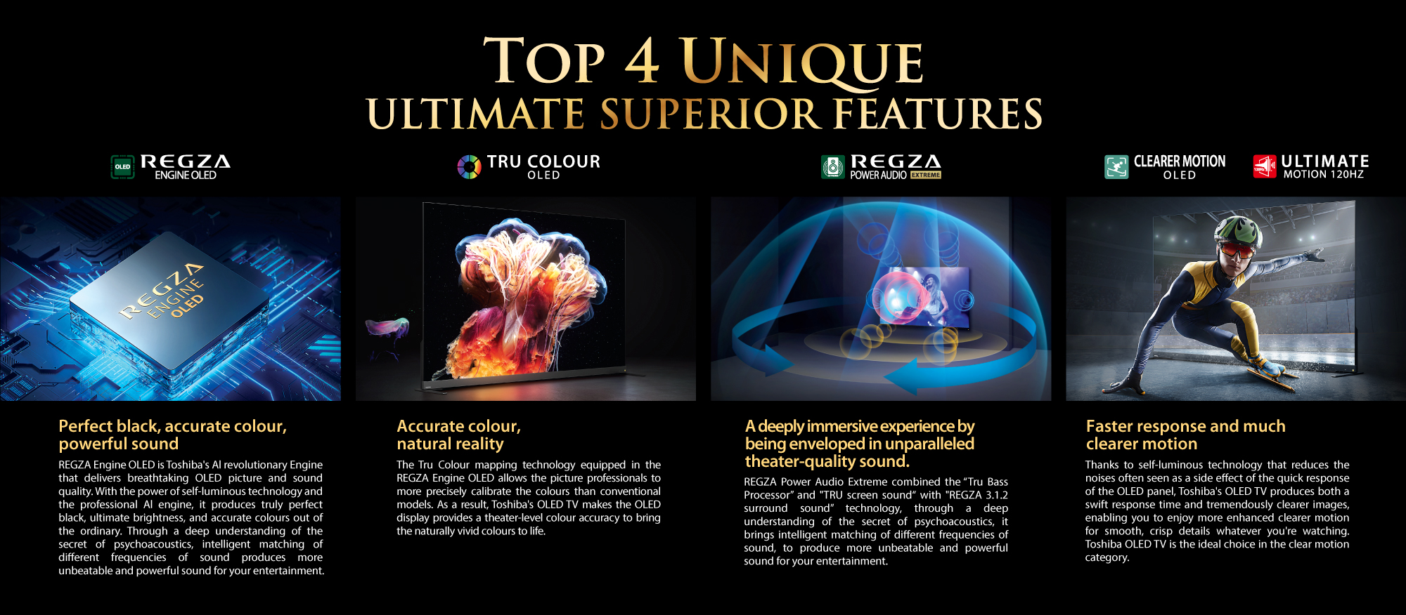 The foundation of Toshiba TV over the last 70 years is a deep evolution of innovation as per customer needs, and the ability to translate them into customer-desired offerings through cutting-edge technologies. Enjoy the magnificence of everything you watch with wide range of Ultimate 4K and Smart TVs, equipped with high-end technology and myriad smart features.